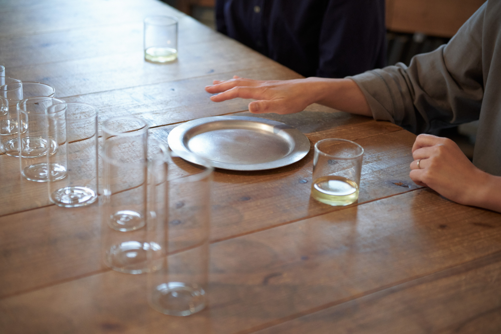 水野 一家団欒など誰かと楽しむときはグラスをいくつか使いますよね。使っているときだけでなく、使っていないときも重ねてコンパクトに、かつその佇まいも美しく感じられるような“日常使い”の茶器ツールがあるといいなと思うんです。いろいろなところからガチャガチャ取り出すのではなくて、セットにすることですごく凝縮されたものになる。1セットあることで、ひとりでも、お客さんが来たときも、サッと楽しむシーンがシンプルに作れると思います。