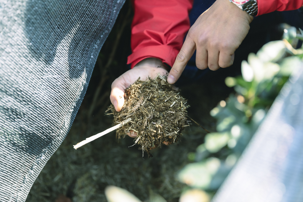 「有機肥料の方が官能評価で優れたものができるという研究もあるんです。微生物も多くなって根の張りもよくなると言われているので有機肥料を中心にしているのですが、ミミズが多くなりましたね。暖かくなってくると肥料にカビがついて分解されやすくなって、だんだん(新茶の季節が)近づいてきているなと感じますね」