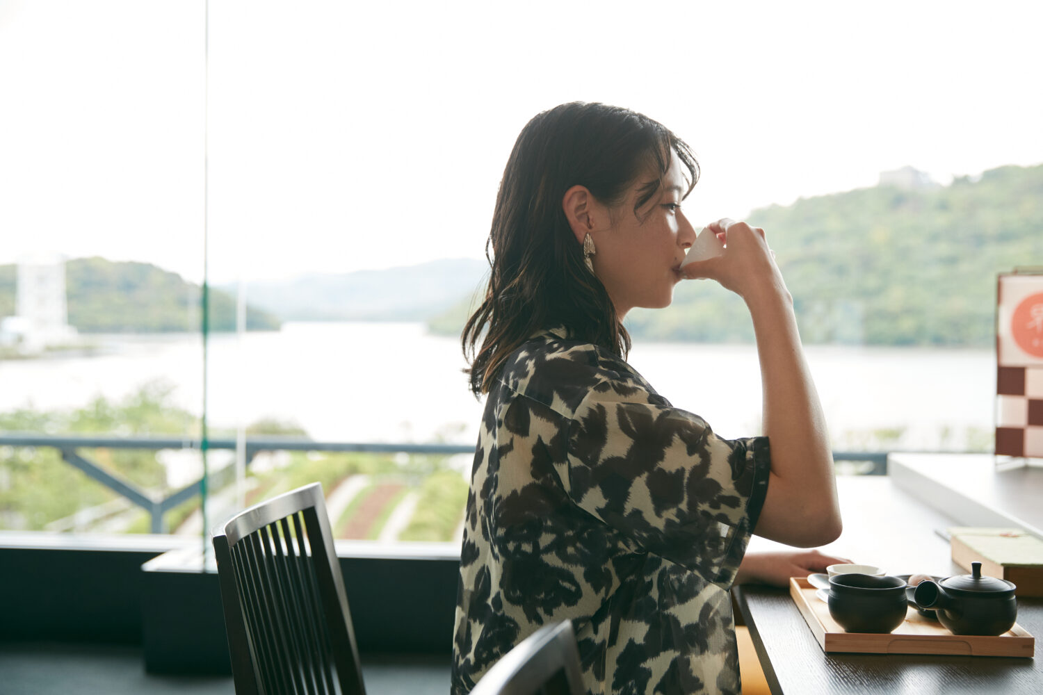 Photography for this feature was conducted on location at KAI Enshu, located at the Kanzanji Onsen hot springs resort in Hamamatsu, with the full cooperation of Hoshino Resorts, proprietors of the KAI Ryokan brand. All rooms overlook Lake Hamana at this relaxing hot spring ryokan, which is also renowned for its hospitality featuring Shizuoka’s own famous teas. Between May 15th and June 30th, a special “Shizuoka New Tea Plan” is available to celebrate the new tea season. This one-night, two-day package allows you to enjoy all the hospitality the ryokan has to offer, with opportunities to savor new tea every step of the way, from your arrival, to your room, to the hot springs, and of course, to dinner.
